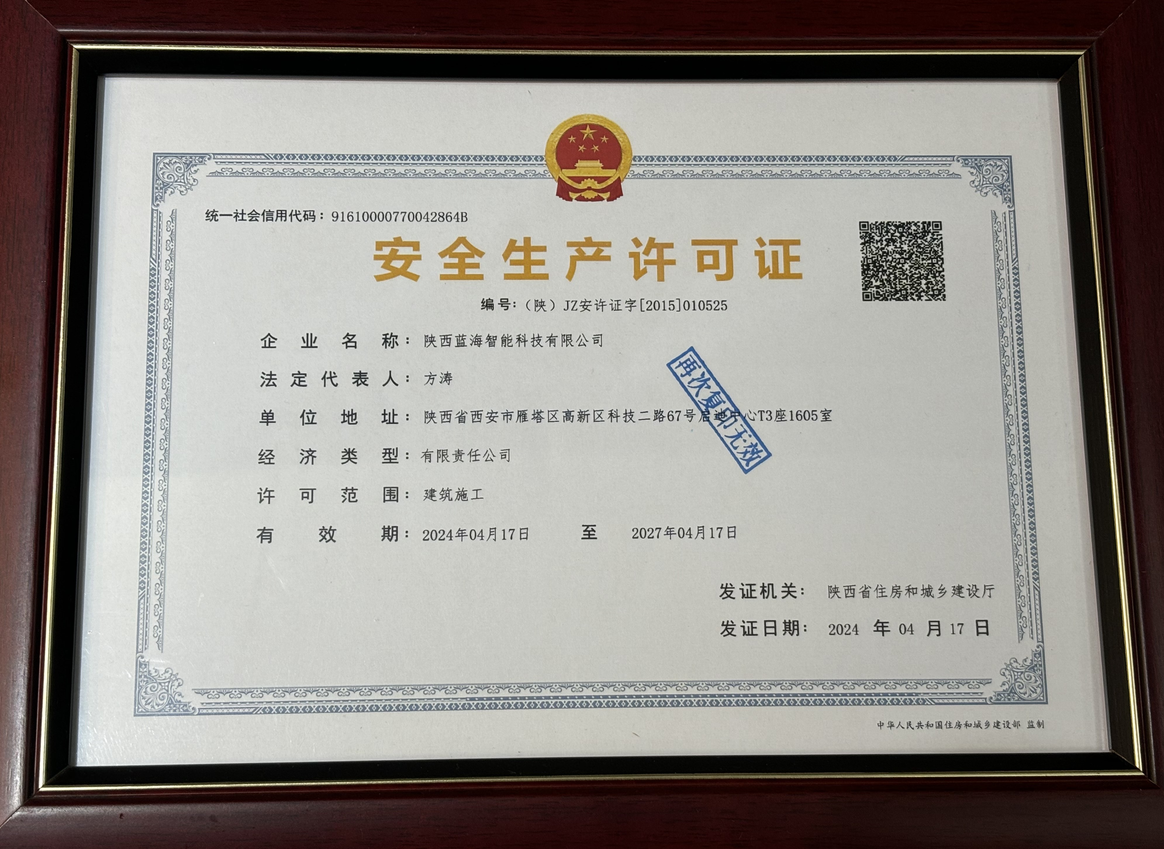 安全生產(chǎn)許可證 建筑機電安裝工程專業(yè)承包一級資質(zhì)